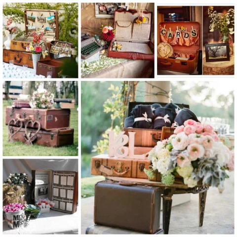 Koferi mogu biti mnogo toga – od okvira za raspored sedenja i menije, preko „držača“ drugih dekoracija, do mesta za odlaganje želja koje će Vam gosti napisati.
