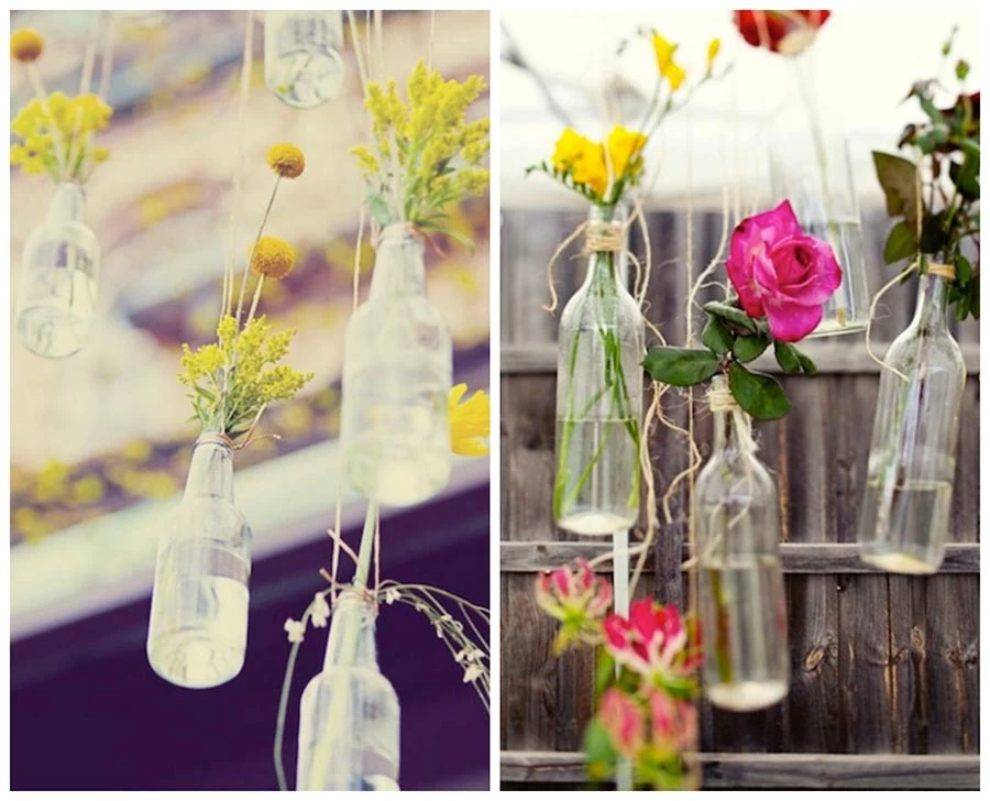 Male boce možete ukrasiti po jednim cvetom i okačiti ih. Cveće koje se koristi može biti isto ili potpuno različito – što daje pravi rustični izgled.