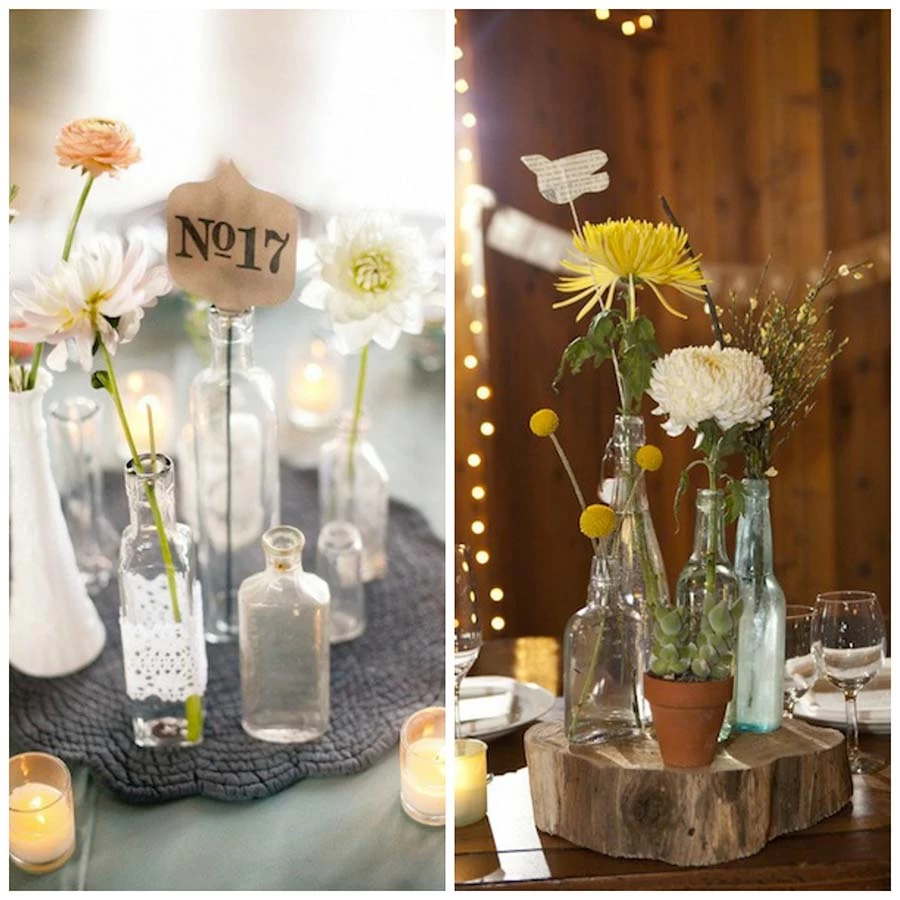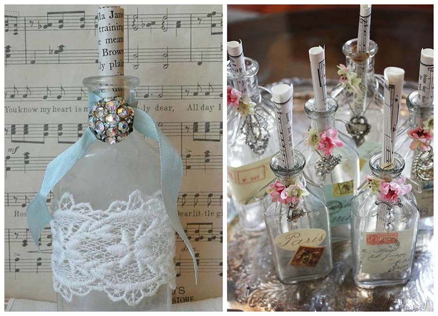 Flaše su uvek bile zanimljiv detalj u domovima, bilo prazne ili pune, ukrašene ili umesto vaza. Lako ćete ih uklopiti i u svoju vintage dekoraciju za venčanje. Možete ih birati tako da se slažu sa preovlađujućom bojom na venčanju ili sa nekom potpuno suprotnom, kako biste ih istakli.