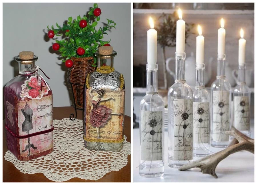 Dekupaž flašice – same, sa cvećem ili svećama, daće dodatni pečat Vašem venčanju.
